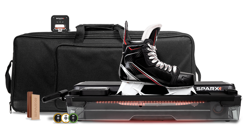 The Sparx Sharpener 3 features Bluetooth and Wi-Fi connectivity - the first of its kind in the skate sharpening world. Connect the Sparx Sharpener 3 to the revolutionary Sparx BEAM and to the Sparx App and unlock a whole new world of controls and features.